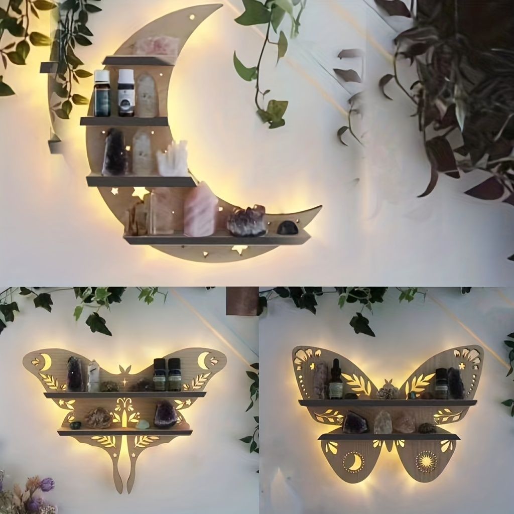 Home > 1pc Crystal Display Shelf - Wall Mounted Decorative Shelf for Moon Moth Butterfly Lamp - Perfect for Halloween, Thanksgiving, Christmas