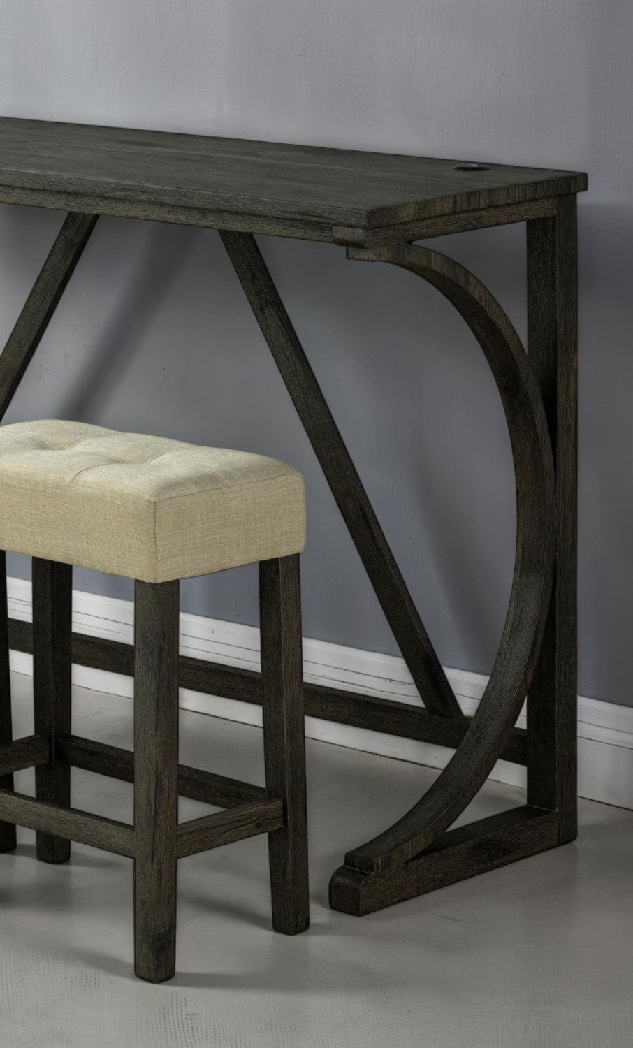 Description - Unique Functional USB option Top Table, features a unique table design paired with three matching stools, perfect for space-saving style.Product Dimensions:-Dining Table - 59"W X 19"D X 36"HDining Chair - 18"W X 11"D X 24"HListing Includes :- 4pc Dining Set (1x Dining Table And 3x Stools) Only.Product Features:-TransitionalBrown/BeigeFabric, Rubberwood, Paper Veneer, Engineered WoodUSB-A & USB-C Charging PortsBiscuit-Tufted Seat Cushion